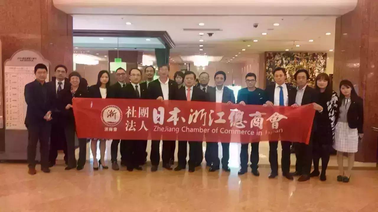 图为静冈县厅工作人员手执“谢谢浙江总商会”字样的合影